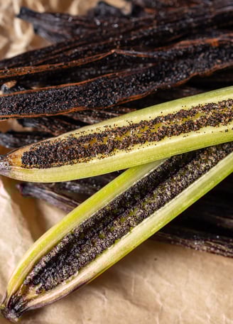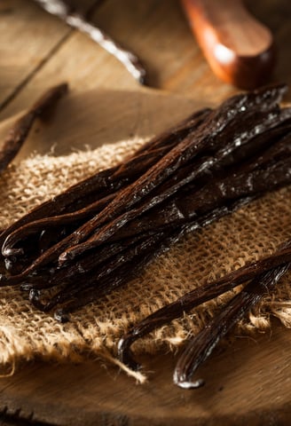 Oferujemy trzy odmiany wysokiej jakości wanilii burbońskiej z Madagaskaru: NR2 (najwyższa zawartość waniliny), NR1 (dłuższe, selekcjonowane laski) oraz RED (Rouge), popularną w USA. Przechowywane w optymalnych warunkach zachowują pełnię aromatu aż do 5 lat.